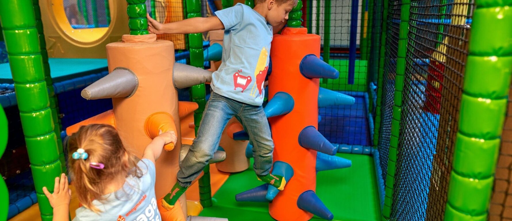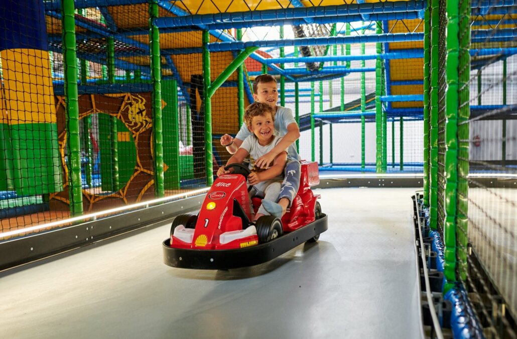 Do dyspozycji urwisów jest olbrzymi labirynt atrakcji z pochowanymi zjeżdżalniami, trampolinami, baseny z piłkami, torem samochodowym, ancyarmatami i wieloma, wieloma innymi niespodziankami dla dzieci w różnym wieku.
