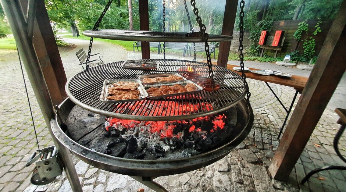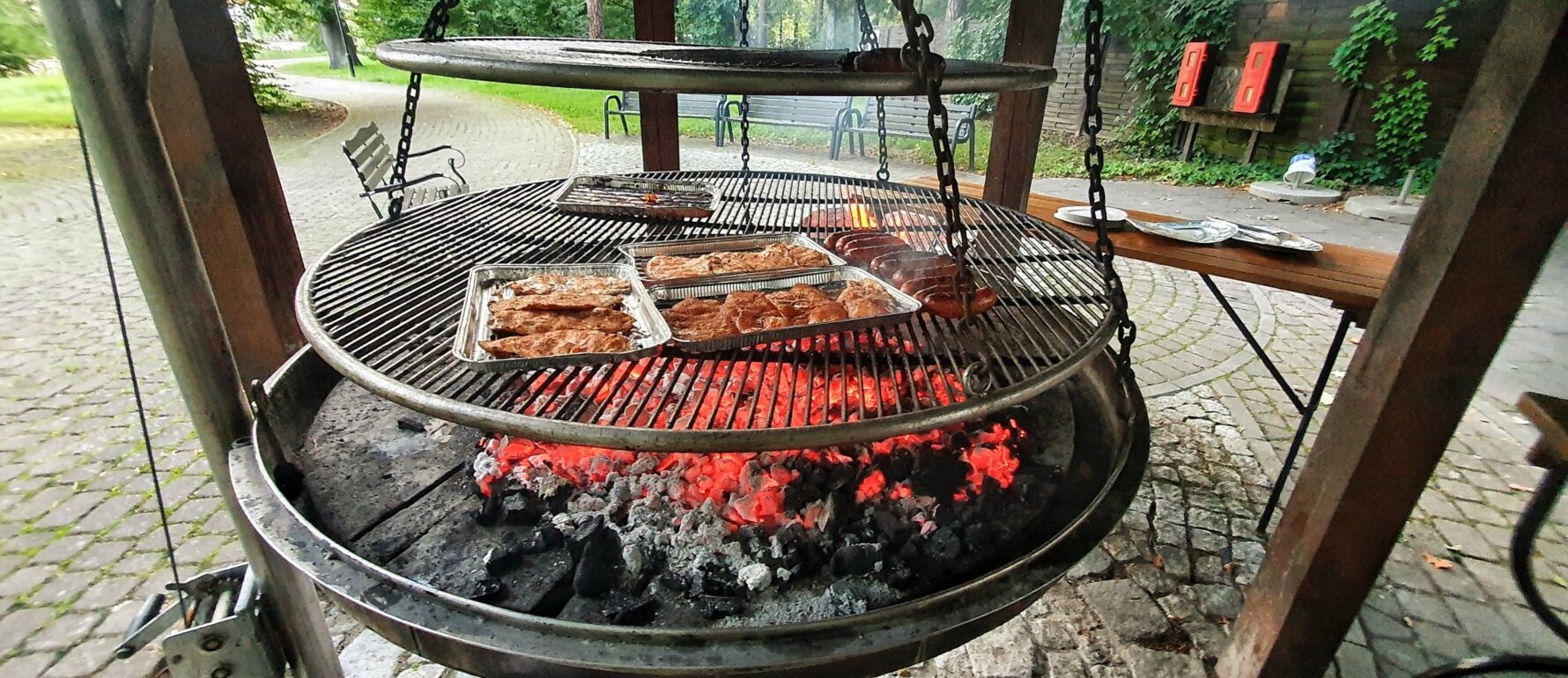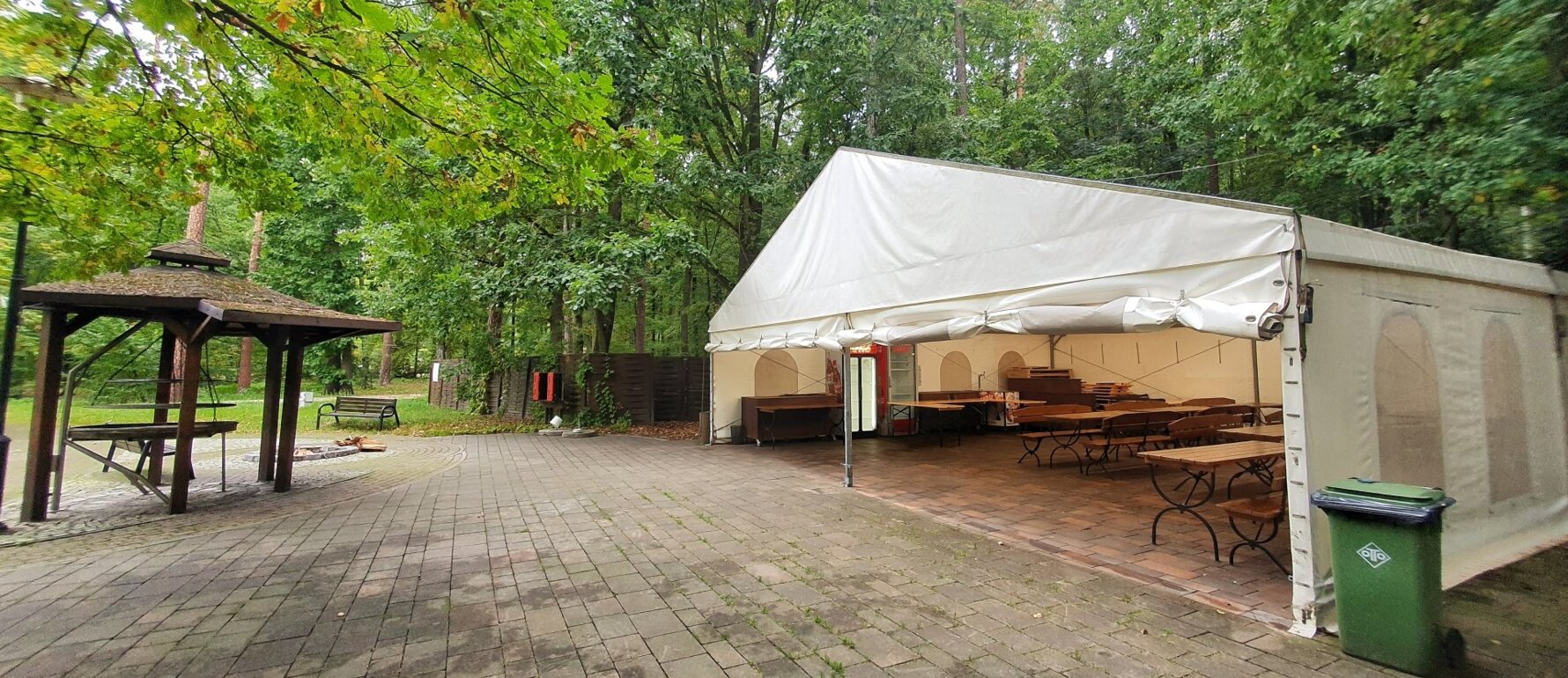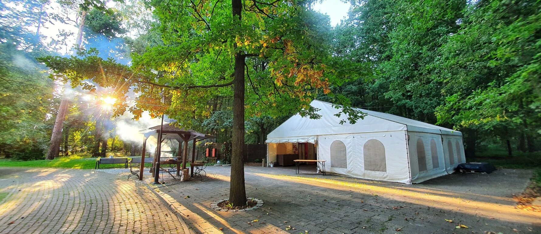 Oprócz imponujących rozmiarów grilla można również ogrzać się lub upiec kiełbaski przy ognisku. W namiocie można zaaranżować na dowolny sposób ustawienie stołów i ław, a miejsca starczy również na stanowisko DJ-a i parkiet dla chcących potańczyć.