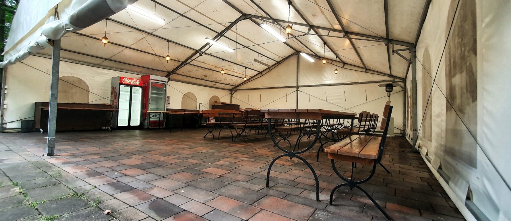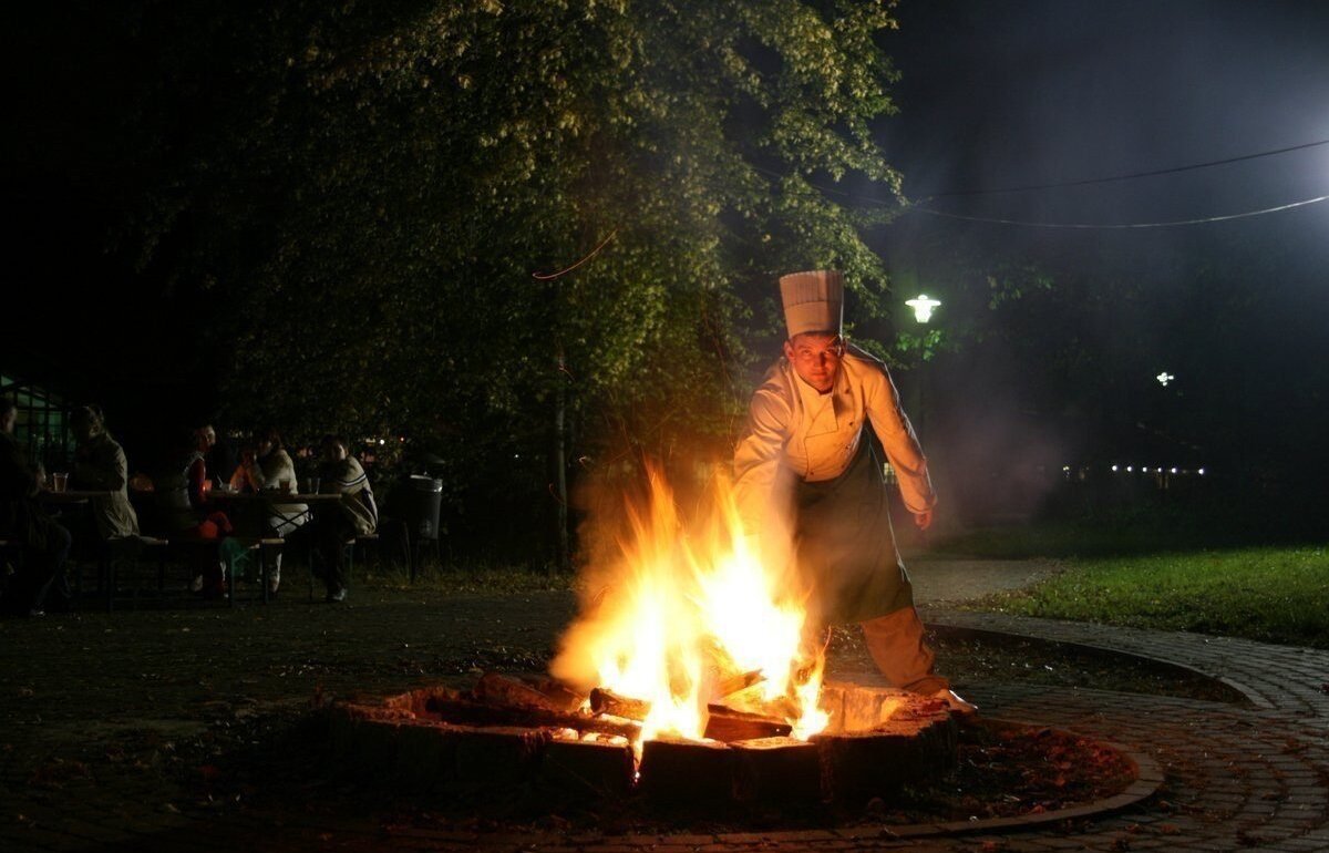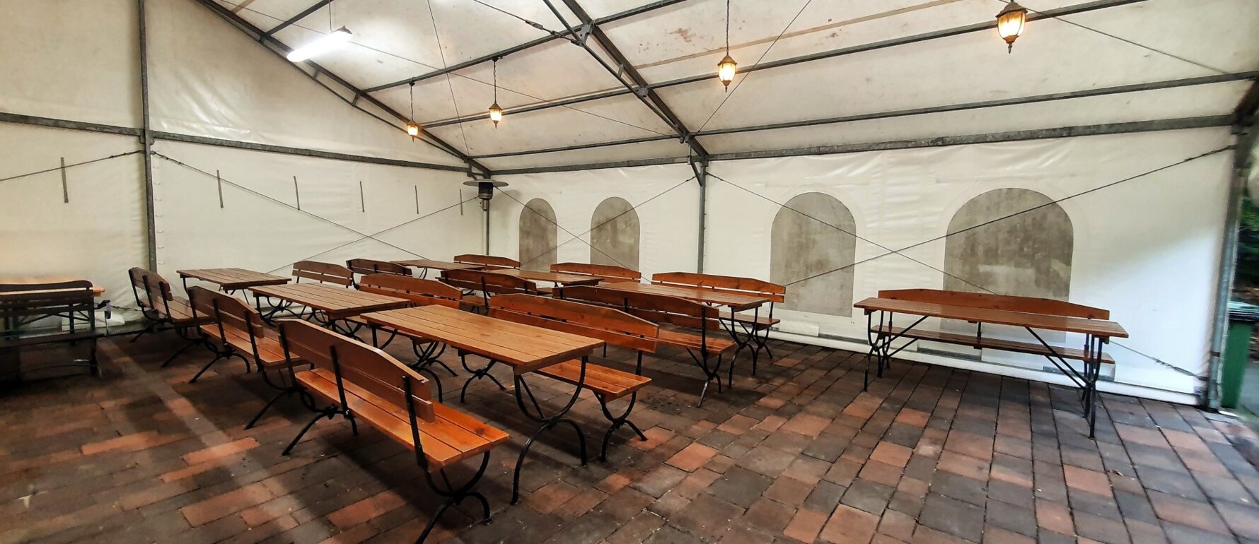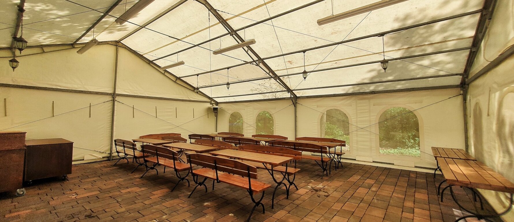Oprócz imponujących rozmiarów grilla można również ogrzać się lub upiec kiełbaski przy ognisku. W namiocie można zaaranżować na dowolny sposób ustawienie stołów i ław, a miejsca starczy również na stanowisko DJ-a i parkiet dla chcących potańczyć.